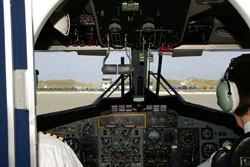 die Twin Otter hoppelt über den Sand zu ihrer Startposition. Nach wenigen