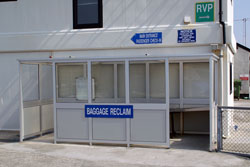inklusive Bar & Kaffee. Die Gepäckausgabe findet außerhalb des Gebäudes in