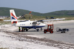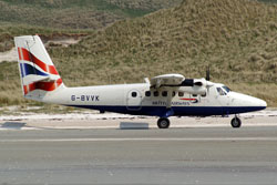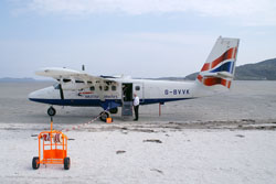 Anschlussflug, die Dash 6-300 G-BVVK der Loganair aus Barra. Kurz nach der