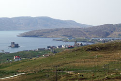 Hauptdorf Castlebay wird bestimmt von der Kismuil Burg, die Mitten in der