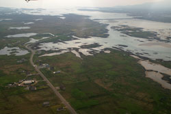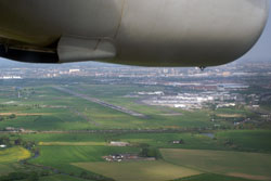 befinden wir uns schon im Endanflug. In geringer Höhe geht es über eine