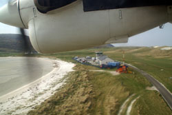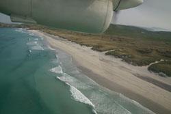 der Luft und er nimmt Kurs auf den Strandflughafen von Barra. Der