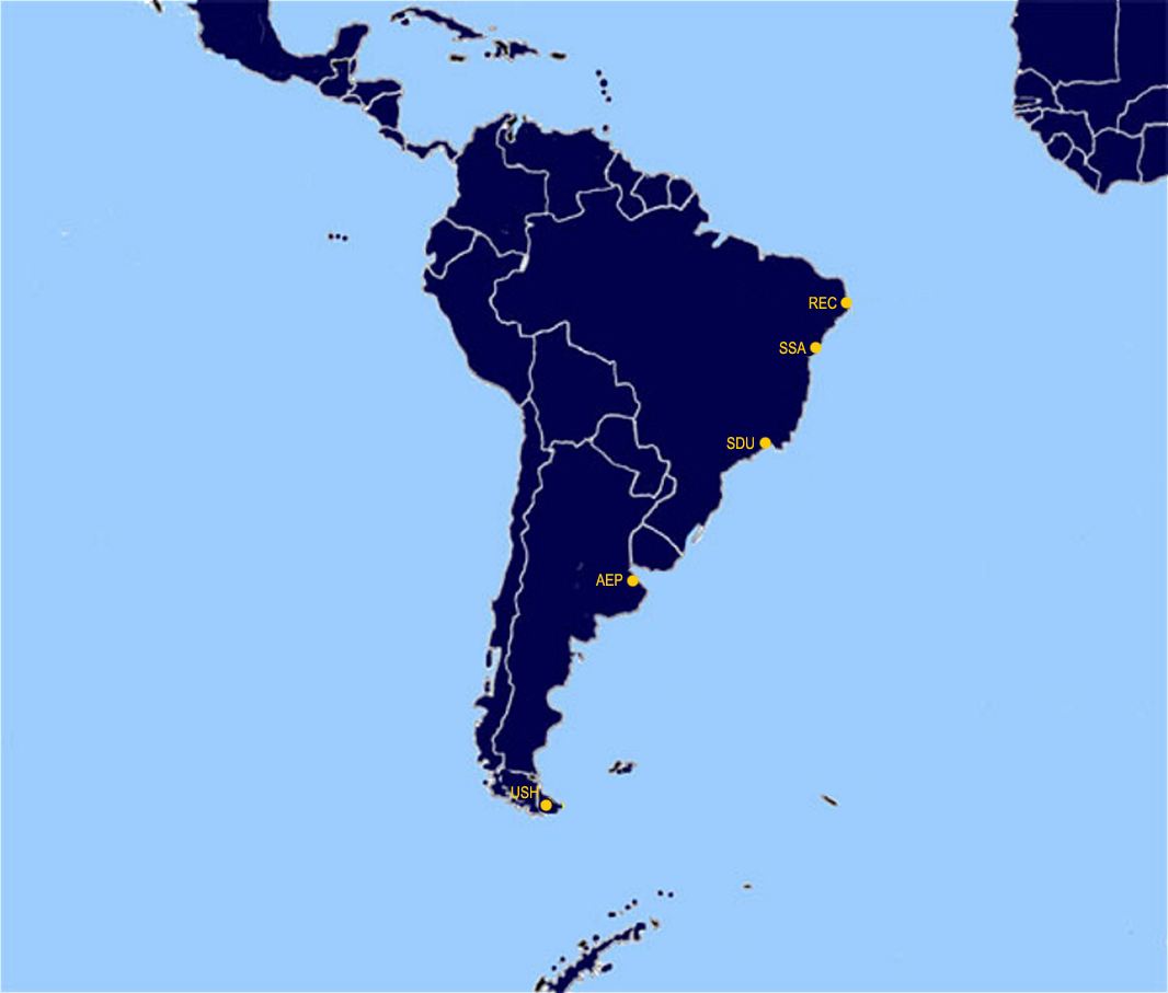 Klicken Sie auf den gewünschten Flughafen auf der Karte oder in der nach Ländern sortierten Liste unter der Karte: